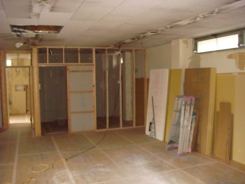床上げの後は間仕切りです。トイレ、洗面、バックヤードの仕切りを作っていきます。